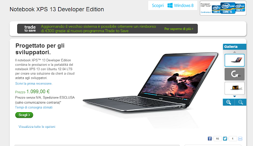Ricordo inoltre che sono disponibili anche altri modelli di Dell XPS 13 con Windows che possiamo installare Ubuntu o altra distribuzione Linux in dual boot a partire da: