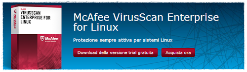 McAfee VirusScan Enterprise for Linux è un software a pagamento che possiamo comunque testare gratuitamente per 90 giorni accedendo in questa pagina.