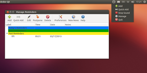 Gli sviluppatori Indicator Remindor hanno da poco rilasciato la nuova versione scritta in QT la quale offre le stesse funzionalità e sopratutto un’interfaccia grafica molto simile alla precedente compreso l’AppIndicator dedicato.