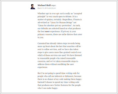 Proprio nell’ultimo post ha postato un commento che sta suscitando diverse discussioni riguardanti la privacy di Ubuntu.
