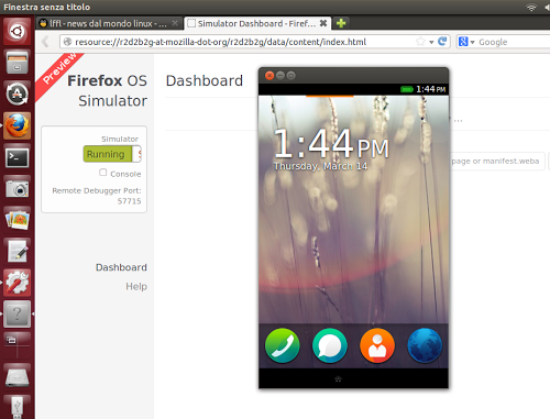 Ecco alcune immagini di Firefox OS emulato con Firefox OS Simulator 3.0 su Ubuntu: