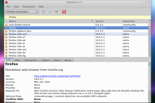 Octopi è un frontend di Pacman scritto in Qt in grado di offrire una semplice ma allo stesso tempo completa interfaccia grafica con la quale potremo operare al meglio sui pacchetti installati e non presenti sui repository ufficiali di Arch Linux. Con Ocrtopi potremo installare, rimuovere o aggiornare pacchetti con la possibilità di effettuare ricerche mirate si pacchetti disponibili oppure installate.
