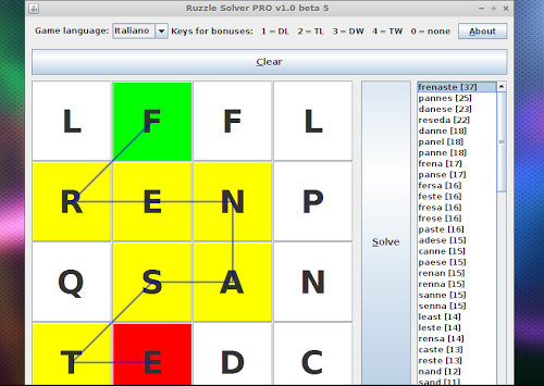Dal successo di Ruzzle sono approdati diversi progetti dedicati come Ruzzle Solver PRO un’utile software multi-piattaforma che ci permette di trovare velocemente tutte le combinazioni di parole disponibili.