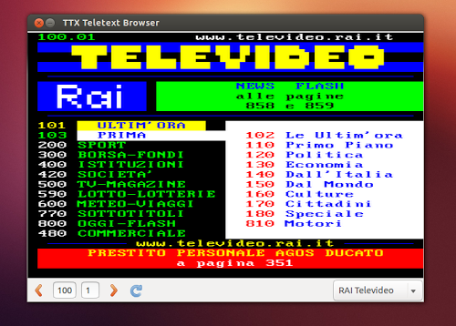 TTX è un nuovo progetto dedicato ad offrire il televideo RAI, tedesco, bulgaro e finlandese da una semplice finestra presente nel nostro desktop senza dover accedere al nostro browser.
