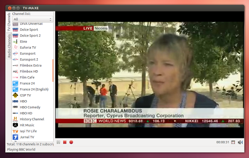 TV-MAXE è un’applicazione open source, scritta in Python, sviluppata per offrire un’ottimo player video per la riproduzione di canali tv e audio in sfruttando la tecnologia P2P (Peer-to-Peer). Tra le principali caratteristiche di TV-MAXE troviamo il supporto per SopCast (sop) e altri tipologie di file in streaming http, mms e rmtp inoltre permette di visualizzare la trasmissione a pieno schermo e di registrarla mentre la visualizziamo.