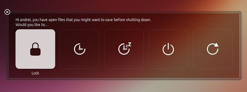 Ubuntu 13.04 aggiunge le nuove finestre di dialogo per lo spegnimento, riavvio, blocco schermo ecc