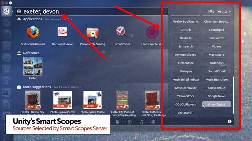 Tra le novità che troveremo nel nuovo Ubuntu 13.04 ci sarà anche il nuovo Smart Scope una nuova funzionalità basata sul progetto Lens Scope che permetterà all’utente di effettuare ricerche mirate in molti siti web il tutto direttamente dal Dash.