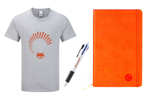 La nuova T-Shirt Ubuntu 13.04 Raring è di color grigio chiaro con davanti il logo di Raring proposto al recente UDS-R di color arancio. Oltre la nuova t-shirt Canonical ha presentato anche la nuova Ubuntu 4-in-1 Pen una penna che permette di cambiare colore di scrittura tra i 4 colori disponibili: nero, blu, rosso e viola ed il nuovo Ubuntu Castelli Notebook color arancio con il logo Ubuntu.