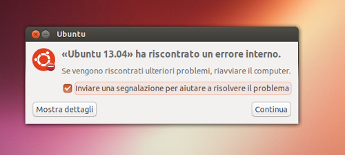 Per poterli risolvere velocemente Canonical ha deciso d’integrare un sistema che ci notifica gli errori del sistema il quale, su conferma dell’utente, può inviare agli sviluppatori dettagli sull’errore in modo tale da poter correggere eventuali bug del sistema.