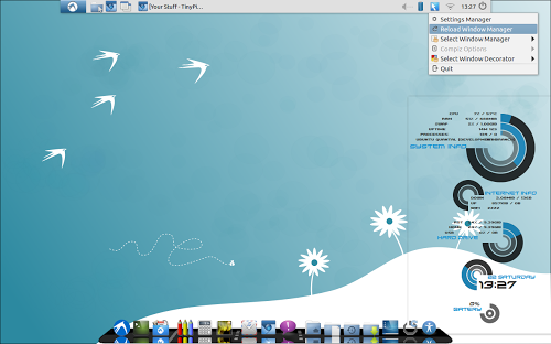 Per risolvere il problema basta installare e attivare il xcompmgr all’avvio ed ecco la dockbar perfettamente integrata nel nostro ambiente desktop.