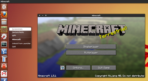 Minecraft è un gioco molto amato anche dagli utenti Linux per installarlo con facilità è possibile utilizzare un’installer non ufficiale il quale oltre ad installare OpenJDK 7 richiesta per poter utilizzare il gioco aggiunge una comoda quicklist con la quale potremo effettuare velocemente screenshots del gioco accedere alla Texture Packs oppure al Wiki ufficiale.