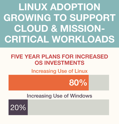 La ricerca è stata effettuata su aziende con oltre 500 dipendenti e con un fatturato superiore ai 500 milioni di dollari ha incanto come le aziende in questi ultimi anni scelgano sempre di più Linux come sistema operativo per le proprie infrastrutture.