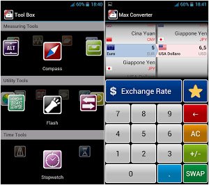 Con Tool Box per Android avremo a disposizione di una Bussola Digitale, Altimetro, Vibrometro, Livella, Goniometro, rilevatore di campo magnetico, uno piccolo metro, Torcia, Calcolatrice, Abacus, Convertitore (che può convertire denaro, unità di misura ecc), Lente di ingrandimento, Score Board, Roulette, Barcode Reader, Cronometro, Timer e Metronomo.