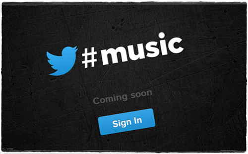 Twitter #Music è un nuovo servizio, integrato al sito di microblogging, dedicato alla musica dove, secondo alcuni blog, sarà possibile effettuare ricerche ed ascoltare i nostri brani preferiti e sopratutto condividerli via Twitter.