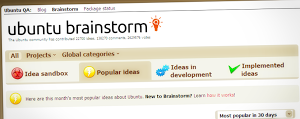 Come per Dell con il progetto IdeaStorm, il portale Ubuntu Brainstorm permette agli sviluppatori di collaborare con gli utenti i quali possono proporre novità, applicazioni, giochi, nuovi progetti, idee ecc, da integrare nelle prossime release di Ubuntu. Tramite un sistema di votazione è possibile dare la preferenza ad alcune proposte come ad esempio migliorie dell’interfaccia grafica o correzioni al supporto hardware ed altro ancora.