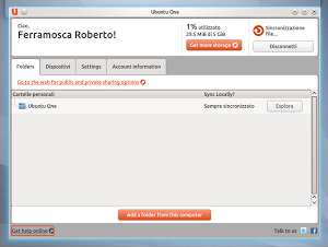 inseriamo il nostro account ed ecco il client Ubuntu One su Fedora.