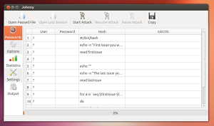 Johnny supporta moltissimi formati di file di input come hash, pwdump, passwd, ecc, l’applicazione inoltre opera sul file di configurazione (~/.john/johnny.conf) cosi da poterlo esportare ed avviare anche da riga di comando.