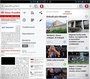 Con Opera 14 Mobile potremo quindi utilizzare la normale connessione quando saremo su rete WiFi e passare alla compressione dati quando utilizziamo la connessione internet mobile.