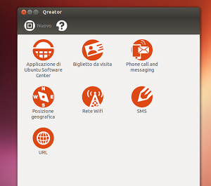 Con Qreator è possibile creare QR Code di link ma non solo possiamo anche creare messaggi di testo, un’applicazione da Ubuntu Software Center, un biglietto da visita, un contatto, la nostra posizione geografica e dettagli della nostra connessione Wireless.