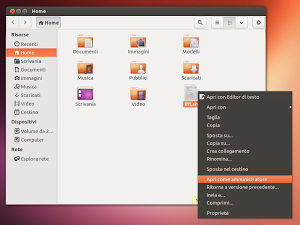fatto questo avremo l’opzione “Apri come Amministratore” nel menu contestuale di Nautilus.