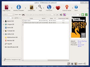 Calibre è un progetto open source che punta a fornire un completo gestore di e-book oltre ad aggiunge la possibilità di poterli visualizzare al suo interno. Considerato da molti utenti e professionisti come il miglior software per gestire ebook sia in Linux che Microsoft Windows e Mac, Calibre supporta i più diffusi formati di eBook e sopratutto permette di sincronizzare e-book con i più diffusi ebook reader attualmente disponibili nel marcato (sempre nel rispetto della gestione dei diritti digitali DRM) oltre a convertirli.