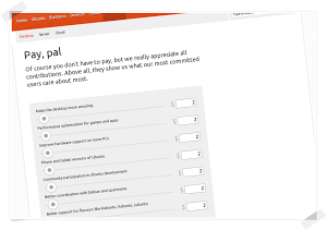 Ubuntu come la stragrande maggioranza delle distribuzioni Linux viene rilasciata gratuitamente la maggior parte del sostentamento arriva dalle donazioni o da introiti ottenuti con vari accordi pubblicitari (esempio il lens shopping) oppure con vari servizi di supporto ecc. Canonical per incentivare le donazioni ha inserito la pagina dedicata prima del download della distribuzione, nella pagina l’utente può indicare a quale servizio supportare come derivare, lo sviluppo dell’ambiente desktop, supporto per giochi e applicazioni ecc. Alcuni utenti hanno chiesto maggiori informazioni riguardanti alcune donazioni come “Community participation in Ubuntu development” e “Better coordination with Debian and upstreams” dato che la comunità lavora in molti progetti senza richiedere alcun compenso, stessa cosa per Debian distribuzione senza scopi di lucro nella quali tutti gli sviluppatori non hanno nessuna retribuzione. Con un recente post sul portale fridge.ubuntu.com., Bacon ha promesso di rilasciare a breve un piano per rendere più trasparente tutte le fasi della donazione indicando i soldi raccolti a quali progetti vengono indirizzati.
