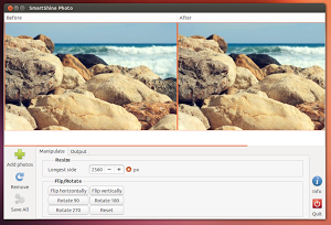 SmartShine è un’applicazione open source con la quale possiamo operare su una o più immagini digitali contemporaneamente agendo in modo veloce ed efficace al loro miglioramento/ottimizzazione. Basato su aaphoto, SmartShine analizza l’istogramma dell’immagine e automaticamente ne imposta alcune ottimizzazioni dai livelli di colore alla saturazione, fattore gamma ecc. Attraverso una semplice interfaccia grafica SmartShine ci permette d’avere un’anteprima dell’immagine ottimizzata e confrontarla con l’originale inoltre o possibile effettuare altre operazioni come ruotare l’immagine, ridimensionarla ecc.