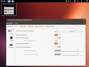 Rimosso il pannello inferiore la gestione delle finestre la troviamo integrata nella panoramica delle attività particolare sezione del nuovo ambiente desktop con la quale possiamo anche effettuare ricerche su applicazioni e file, gestire gli spazi di lavoro ecc. Tramite le estensioni per Gnome Shell è possibile personalizzare o aggiungere nuove funzionalità all’ambiente desktop come ad esempio il nuovo YAWL. YAWL (Yet Another Window List) è un’estensione per Gnome Shell la quale ci ripropone un gestore delle finestre integrato nel pannello con tante ed utili opzioni. Il progetto YAWL (Yet Another Window List) punta a portare in Gnome Shell un completo gestore delle finestre con tanto di anteprima (in stile Windows 7), collegamenti delle applicazioni preferite e moltissime personalizzazioni che possiamo impostare tramite una completa finestra di dialogo.