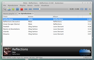 Audacious è un player audio multimediale open source sviluppato per fornire un fork di XMMS disponendo di svariate funzionalità che possiamo aggiungere tramite plugin dedicati. L’idea di Audacious è quella di portare in Linux un player moderno e leggero da poter essere utilizzato anche in pc datati con poche risorse disponibili. Attraverso plugin dedicati è possibile aggiunge diverse funzionalità ad Audacious come equalizzatore multi-banda, AudioScrobbler, supporto per le playlist, gestione delle cover degli album e molto altro ancora. Dalla versione 3.3 Audacious si basa sull’interfaccia grafica GTK+ 3.0 la quale è stata rivisitata e migliorata nella nuova versione 3.4 da alcuni giorni disponibile. Audacious 3.4 aggiunge il supporto per le nuove API per Last.fm e aggiunge la nuova visualizzazione 3D frequency spectrum importata da XMMS e migliora il supporto per le cover degli album.