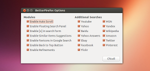 Betterfox è una estensione, specifica per Mozilla Firefox, con la quale potremo migliorare le nostre ricerche effettuate all’interno del motore di ricerca di Google. L’idea dell’add-on Betterfox è quella di fornire all’utente molte più informazioni da altri portali all’interno del motore di ricerca di Google integrando le ricerche di molti siti web come YouTube, Yahoo, Baidu, Yahoo Answers, Ebay, Facebook, Flickr, MSN, Yandex, Wikipedia, Amazon, Twitter e Pinterest.
