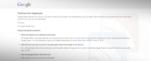 Come preannunciato il primo luglio Google ha chiuso definitivamente il servizio Reader, per gli utenti sarà possibile salvare l’elenco dei feed entro il 15 luglio 2013.