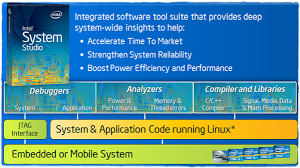 Per gli sviluppatori Linux che lavorano su dispositivi mobili o embedded Intel ha realizzato la nuova piattaforma di sviluppo System Studio for Linux. Intel System Studio è una nuova e potente piattaforma di sviluppo che contiene strumenti avanzati per lo sviluppo in nuove piattaforme embedded e mobili targati Intel. Tra i vari strumenti inclusi in Intel System Studio for Linux troviamo JTAG Debugger, Math Kernel Libray Inspector, VTune Amplifier, C Compiler e altri importanti tools dedicati alle CPU Intel (compreso i nuovi Intel core di quarta generazione Haswell) e System on Chip (SoC).