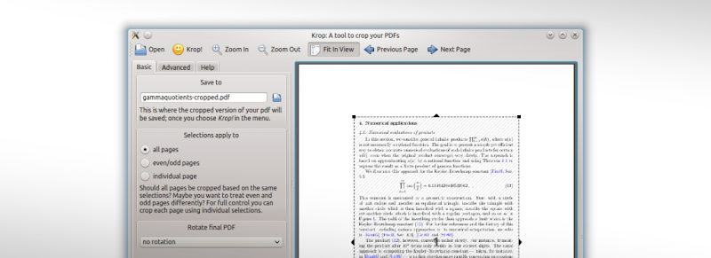 Krop è un software, scritto in Python e basato su PyQT, python-poppler-qt4 e pyPDF, con il quale possiamo ritagliare facilmente una o più pagina contenute in un documento PDF.