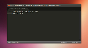 Tengo a precisare che Sublime Text è un’applicazione proprietaria che possiamo utilizzare nella versione gratuita oppure possiamo acquistare la licenza (circa 70 dollari) la quale oltre ad aiutare lo sviluppo del software aggiunge alcune funzionalità. Tra le principali caratteristiche di Sublime Text troviamo la possibilità di visualizzare più file nella stessa finestra il tutto attraverso un’file manager e tab, dispone di strumenti per la ricerca di testo all’interno di documenti aperti recentemente, macro, auto-completamento, selezione (multipla, verticale) per tipo e molte altre funzionalità.