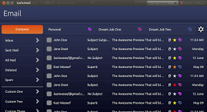 Safe Mail è un nuovo client email open source sviluppato principalmente per Ubuntu Touch ma che verrà rilasciato anche per la versione desktop di Ubuntu il quale dispone di un’interfaccia grafica moderna e ben integrata con Unity oltre a disporre di un supporto multi-account e per i più diffusi servizi web come Gmail, Yahoo! Mail, AOL, Windows Live ecc.
