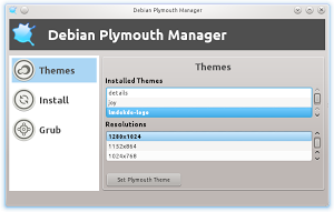 Con Debian Plymouth Manager potremo quindi installare / cambiare tema di Plymouth e correggere eventuali problemi sia di risoluzione che post-installazione di driver proprietari il tutto da una semplice e molto intuitiva interfaccia grafica.