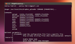 dalla pagina ufficiale del progetto oppure digitando dropbox_uploader –help potremo conoscere tutti comandi per utilizzare Dropbox Uploader.