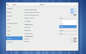 Tra le novità introdotte in Gnome Tweak Tool 3.10 troviamo la nuova opzione “Show Applicazion Menu” attraverso la quale possiamo attivare o disattivare il menu delle applicazioni integrato nel collegamento sul pannello. Gnome Tweak Tool 3.10 aggiunge nuove opzioni riguardanti le finestre tra queste troviamo anche la possibilità di rendere attiva una finestra con il semplice passaggio del mouse.