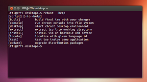 Una volta installato Rebunt basta semplicemente digitare da terminale rebunt seguito dal file ISO di Ubuntu o derivata seguito dall’opzione. Esempio con l’opzione console avremo il terminale in chroot che ci consete d’installare applicazioni o aggiornare la distribuzione, con l’opzione locale installeremo la lingua preferita, con build andremo a ricreare una nuova ISO personalizzata di Ubuntu.