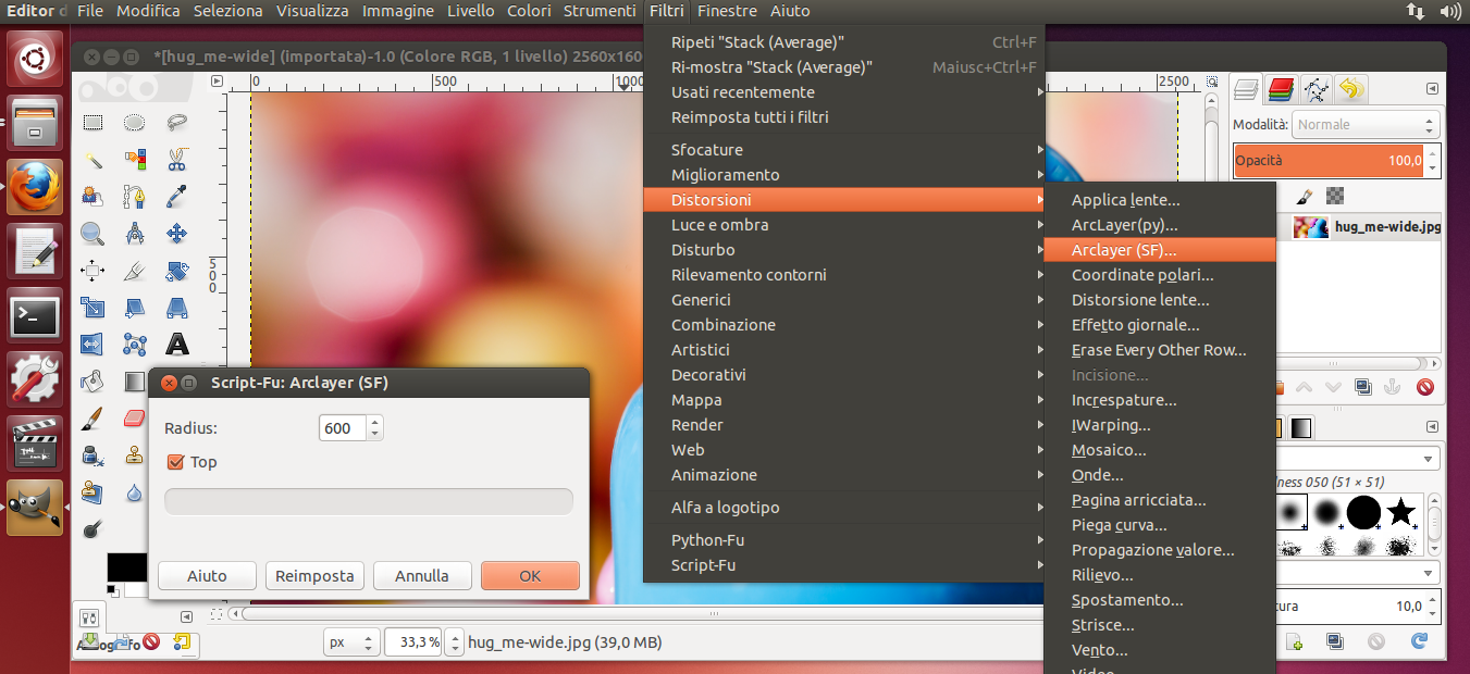 All’interno della raccolta di plugin e script open source Akkana Peck troviamo ad esempio lo script arclayer.scm che ci consente di creare un’arco circolare con la nostra immagine, Fibonacci.scm ci consente invece di creare una spirale di Fibonacci con alcune utili opzioni, con pandora-combine.scm potremo creare splendidi panorami collegando assieme più immagini, il plugin blobi.py ci consente di creare un effetto di testo simile a bevel and drop shadow, export-scaled.py ci permette di esportare una versione in scala dell’immagine corrente, ricordando il nome & scala per la successive esportazioni ecc.
