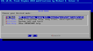 Ghost4Linux o G4L è una distribuzione livecd che ci consente di effettuare il backup e ripristino della nostra distribuzione Linux o Microsoft Windows con molta facilità e soprattutto con svariate opzioni.