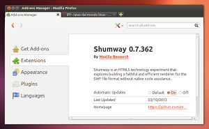 Possiamo già installare e utilizzare Mozilla Shumway in Firefox per Linux, Windows e Mac installando questo plugin e disattivando il plugin di Adobe. Se si utilizza Ubuntu 64-bit o una derivata dovremo anche installare i pacchetti libc6-dev-i386 g++-multilib per il corretto funzionamento del plugin, per installare questi pacchetti basta digitare da terminale: