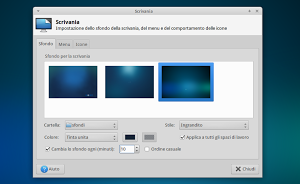 Tra le novità del nuovo XFCE 4.12 avremo anche un nuovo gestore degli sfondi che ci consentirà di poter impostare uno sfondo diverso per ogni spazio di lavoro inoltre troveremo la nuova opzione che ci consente di cambiare automaticamente lo sfondo ad un’intervallo di tempo prestabilito.