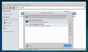 Thunar inoltre ci consente di aggiungere nuove funzionalità al file manager grazie alle “Azioni Personalizzate” ossia collegamenti nel menu contestuale che ci consentono di operare sui file e cartelle selezionate.