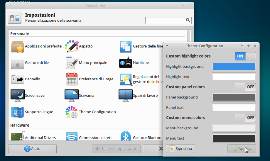 Theme Configuration è un nuovo tool, scritto in vala, che ci consente di personalizzare il team di default di Xubuntu 13.10 Saucy conforme le nostre preferenze. Attraverso una semplice interfaccia grafica, Theme Configuration ci consente di personalizzare i colori del tema, pannello e menu con molta facilità con la possibilità di ripristinare il team di default in un secondo momento con un semplice click.