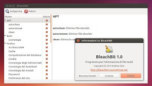 BleachBit 1.0 aggiunge il supporto per il nuovo Ubuntu 13.10 Saucy aggiungendo il supporto per “pulire” SQLite3 e la NativeCache di Adobe Flash Player, la nuova versione inoltre introduce alcune correzioni riguardanti il browser Google Chrome e il supporto per Octave e Warzone 2100. Con il nuovo BleachBit 1.0 potremo rimuovere la cronologia degli ultimi file caricati sulle nuove versioni di VideoLAN VLC, gli sviluppatori del progetto inoltre hanno incluso alcune nuove funzionalità nella versione per Microsoft Windows. Per maggiori informazioni su BleachBit 1.0 in questa pagina troverete le note di rilascio.