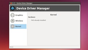 L’interfaccia grafica di Device Driver Manager si divide in tre sezioni una dedicata ai driver per schede grafiche, l’altre per driver per moduli Wireless e l’ultima dedicata al Kernel Linux, all’avvio l’applicazione effettuerà una scansione del nostro sistema indicandoci eventuali i driver disponibili, basta selezionare un driver o kernel e riavviare la distribuzione.