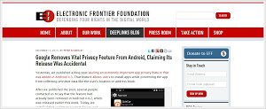 La Electronic Frontier Foundation ha criticato Google per aver rimosso l’applicazione App Ops erroneamente inserita negli ultimi aggiornamenti di Android.