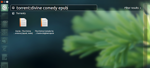 Basterà digitare nella barra di ricerca la scritta torrent: seguita dal file, documento, ecc da cercare, cliccando su un risultato potremo avere informazioni sul file da scaricare come dimensione totale, dettagli ecc basterà un click per avviare il download direttamente dal client torrent preferito (di default Transmission).