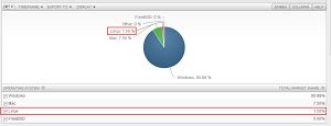 Net Applications è un azienda che elabora i dati rilasciati dai principali servizi che tracciano gli utenti durante la normale navigazione web. Come molti sapranno i più diffusi blog, siti, forum ecc registrano le visite per effettuare statistiche come visite, sistema operativo e browser utilizzato ecc questi dati possono essere utilizzati anche per verificare gli andamenti sull’utilizzo di sistemi operativi, browser. Di recente Net Applications ha rilasciato i dati riguardanti il mese di novembre 2013 che candidano Windows 7 il sistema operativo più utilizzato al mondo, per Linux invece troviamo un calo degli utenti confronto il mese di ottobre passando da 1.61% a 1.56%.